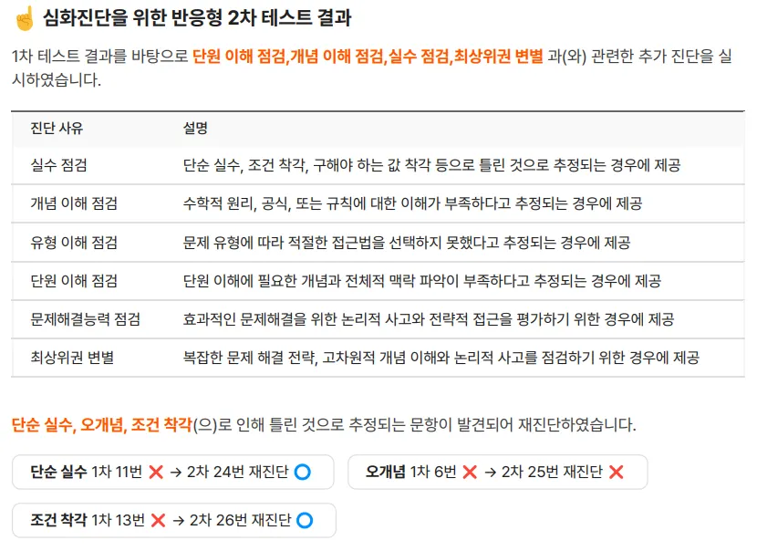 단순 실수, 오개념, 조건 착각 등 오답의 정확한 원인을 파악하면