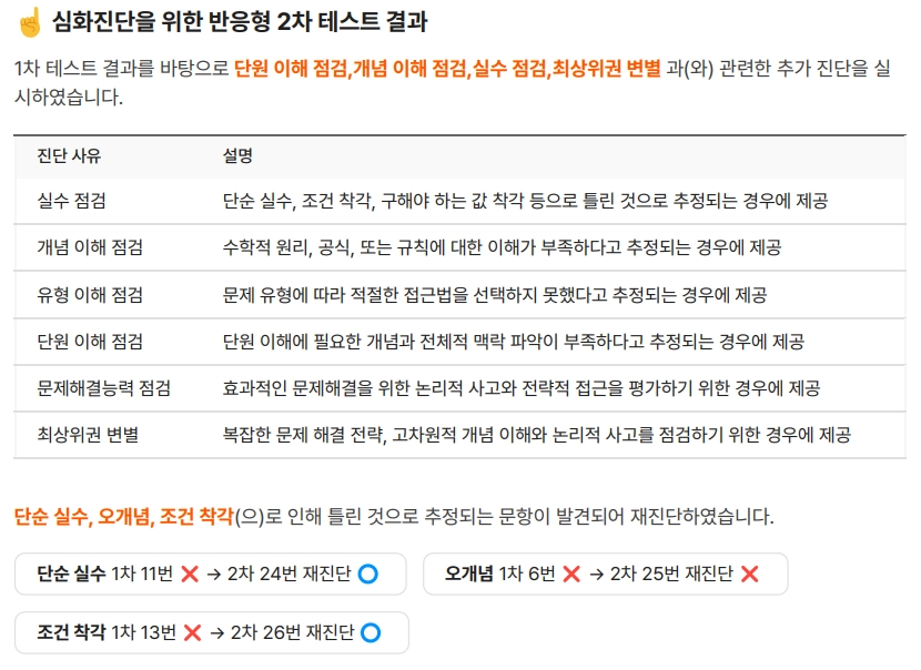 1차 테스트 종료와 동시에 결과를 진단하여 반응형 2차 테스트를 생성합니다.