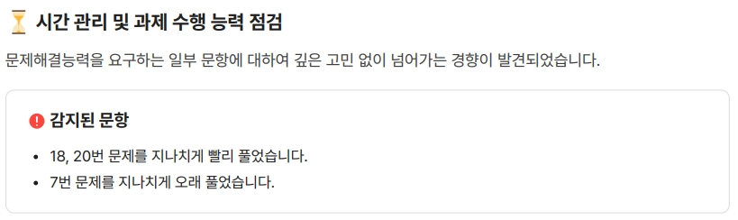 실수 유형까지 분석하여 in-depth 분석 리포트를 제공합니다.