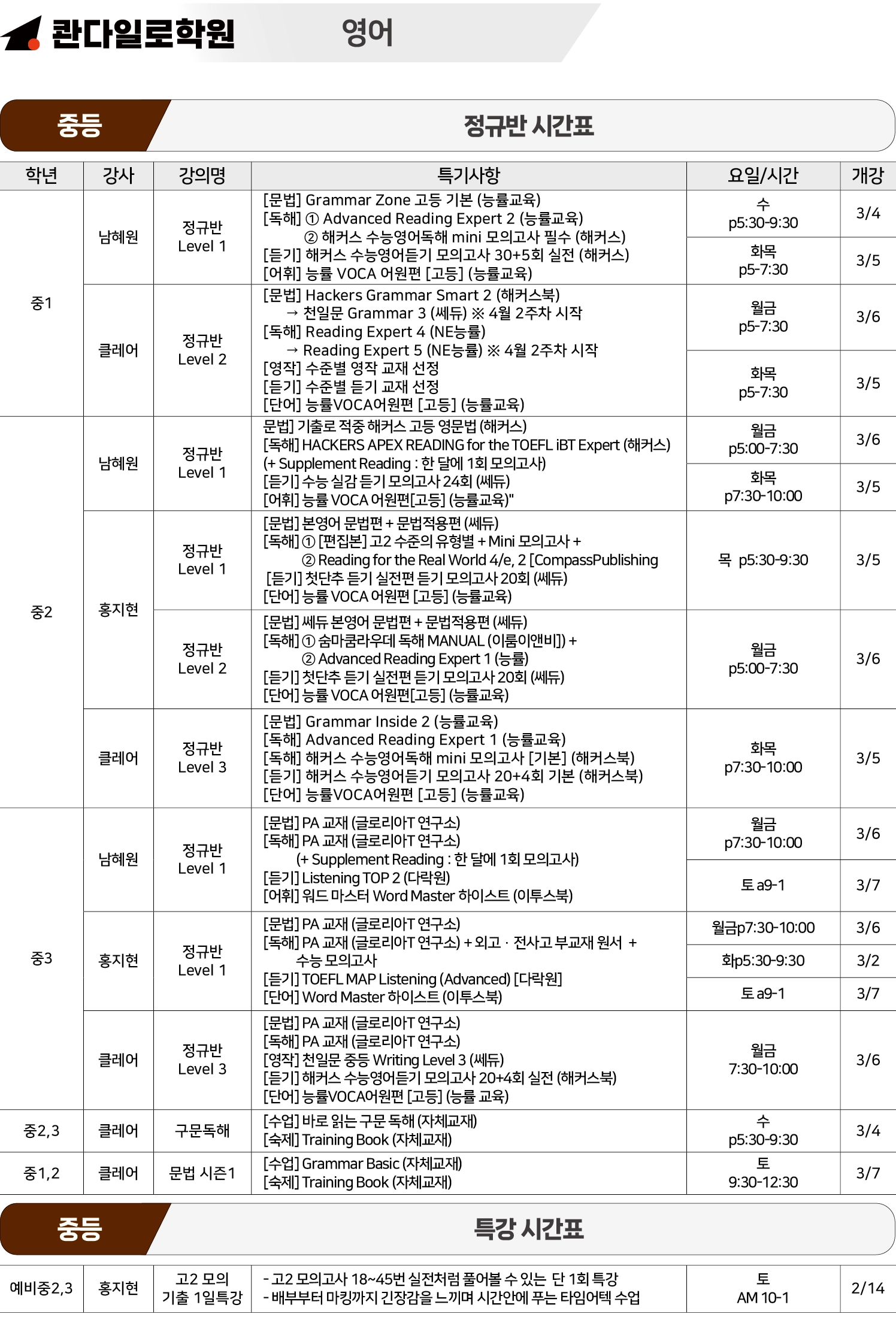 중등부 시간표