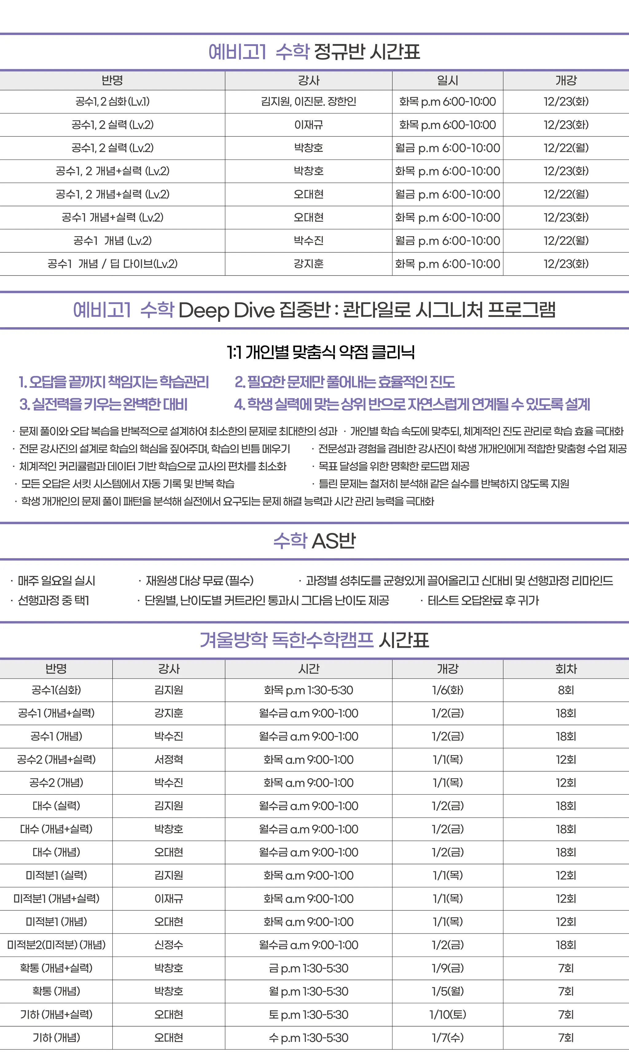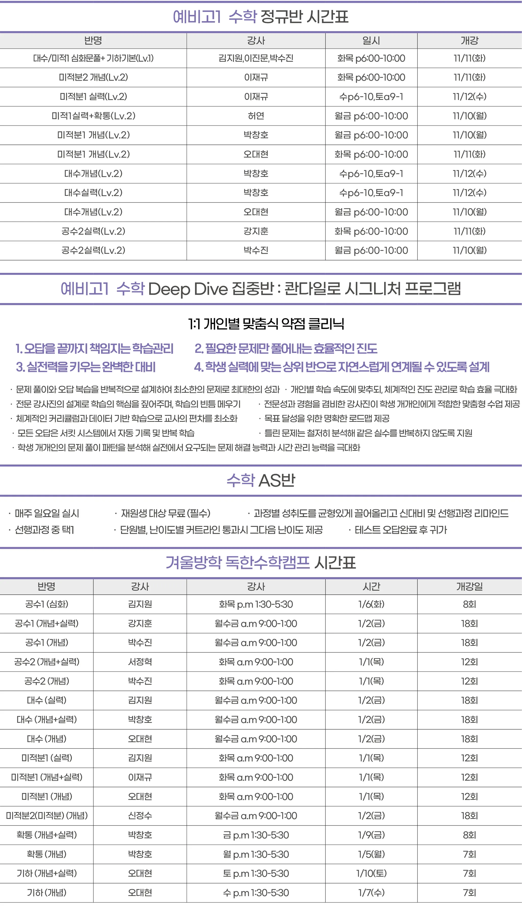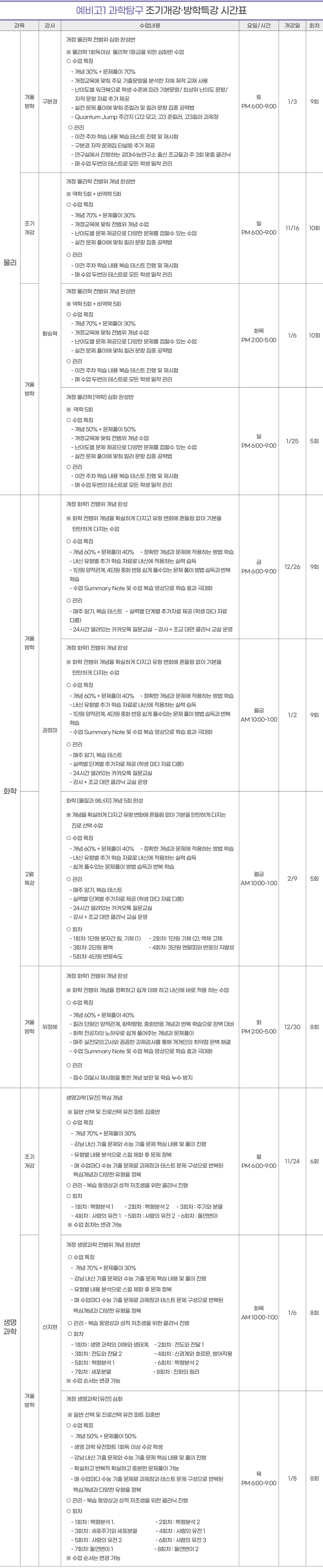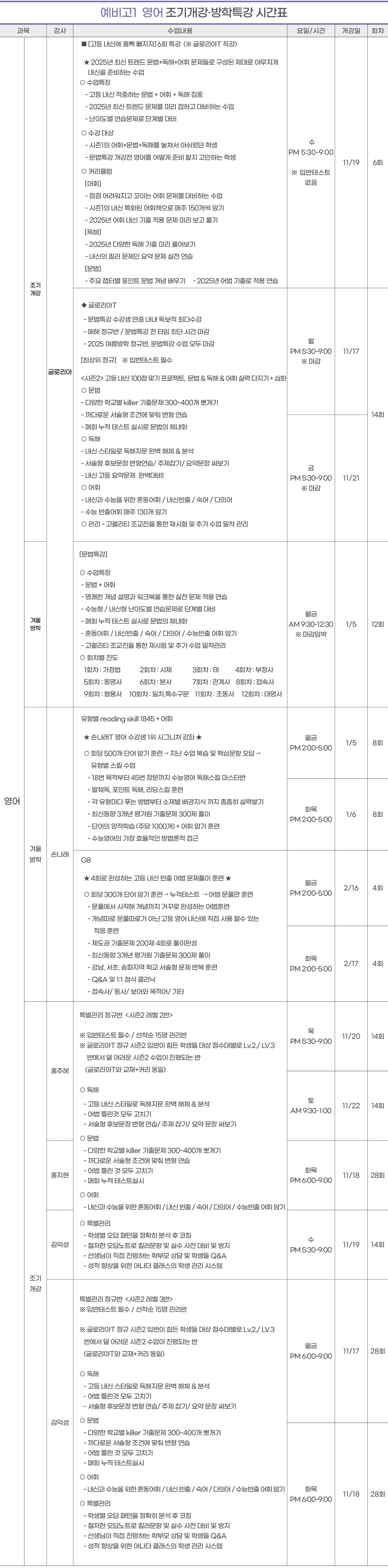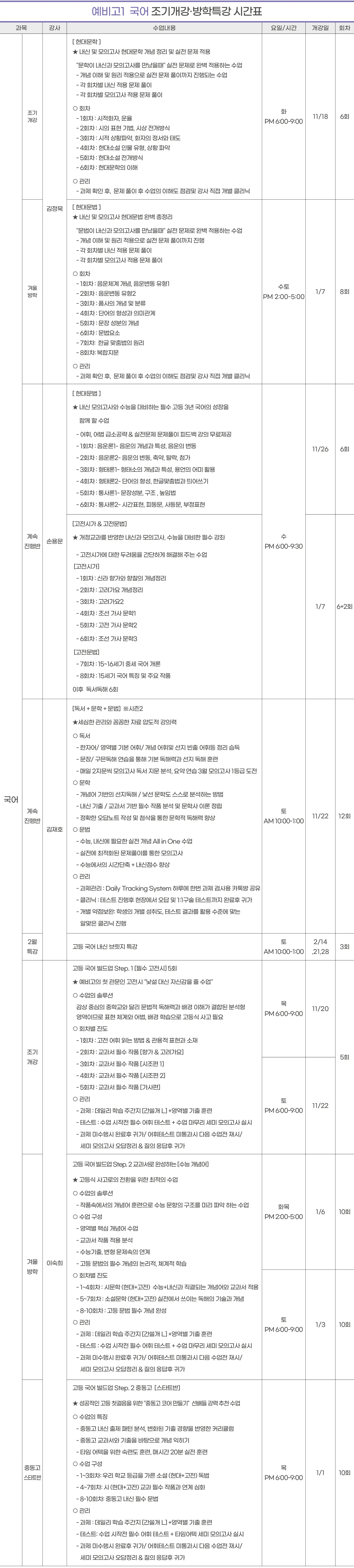 예비고2,3 시간표