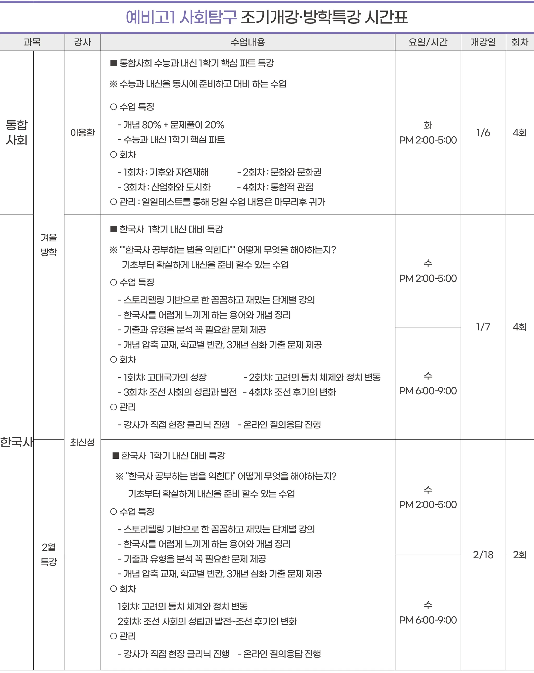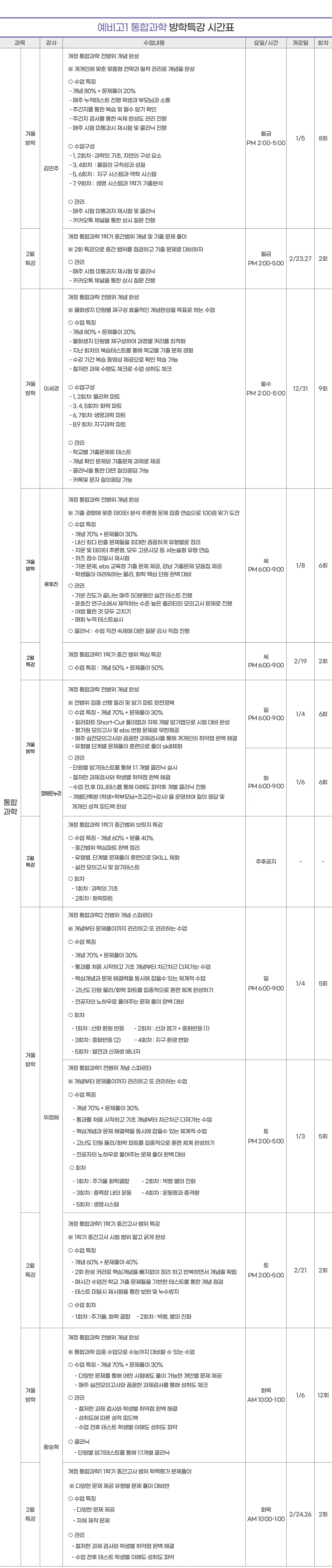 예비고1 시간표